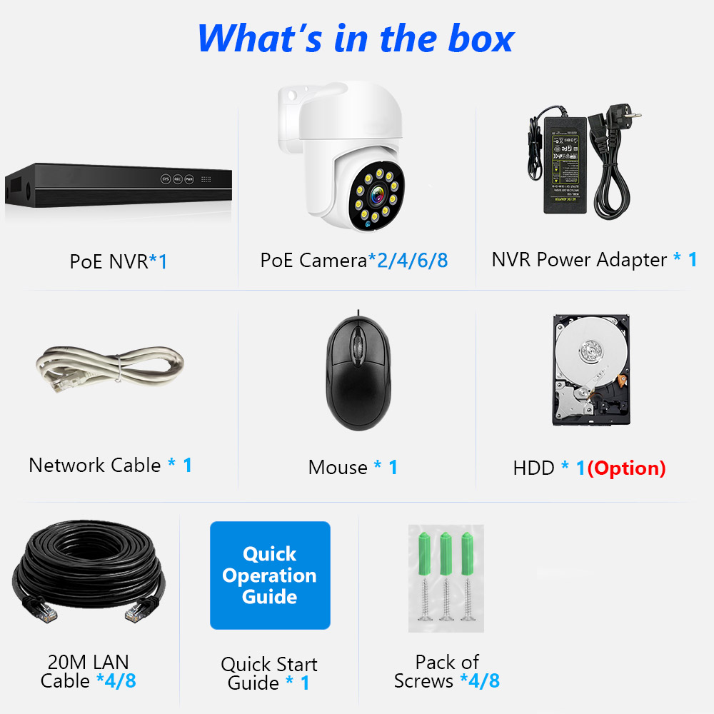 Description:Smart Wireless 4MP 4CH 8CH NVR Camera System Waterproof Wifi Security 8CH NVR Two Way Audio Color Night Vision PTZ Xmeye